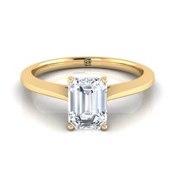 14K Yellow Gold Emerald Cut Timeless Solitaire Comfort Fit Engagement Ring