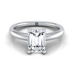 14K White Gold Emerald Cut Rounded Comfort Fit Solitaire Engagement Ring