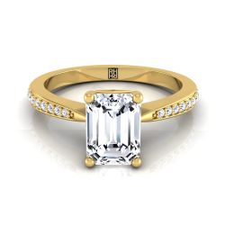 14K Yellow Gold Emerald Cut Diamond Tapered Pave Engagement Ring -1/8ctw