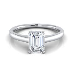 Platinum Emerald Cut Contemporary Comfort Fit Solitaire Engagement Ring