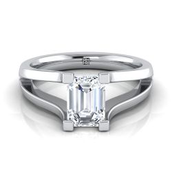 14K White Gold Emerald Cut Plain High Polish Split Shank Solitaire Engagement Ring