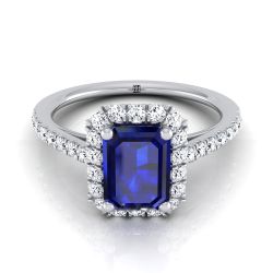 18K White Gold Sapphire Petite Halo French Diamond Pave Engagement Ring -3/8ctw