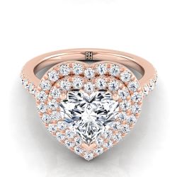 14K Rose Gold Heart Shape Center Double Pave Halo with Linear Diamond Engagement Ring -7/8ctw