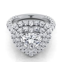 Platinum Heart Shape Center Diamond Bold and Fancy Double Halo French Pave Engagement Ring -2ctw