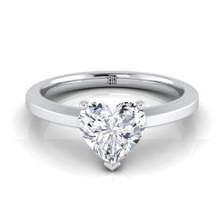 14K White Gold Heart Shape Center Beveled Edge Comfort Style Bright Finish Solitaire Engagement Ring