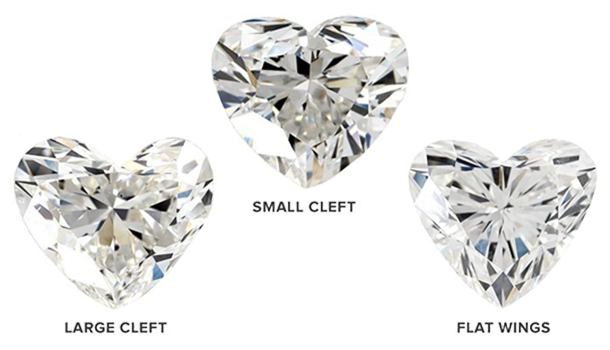 Many heart shaped diamonds have a darker area in the middle where the facets don't reflect as well. This optical effect is called the “bow-tie” effect because the dark area looks like two triangles corner to corner. Look for a heart shape that is brilliant even in the center area to make sure your heart-shaped diamond is beautiful in different lighting conditions.