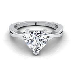 14K White Gold Heart Shape Center Delicate Twist Solitaire Engagement Ring