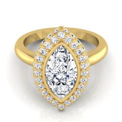 14K Yellow Gold Marquise Bezel Pave 3D Halo Solitaire Engagement Ring