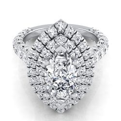 Platinum Marquise Diamond Bold and Fancy Double Halo French Pave Engagement Ring -2ctw
