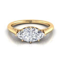 14K Yellow Gold Marquise Antique Scroll Detail Solitaire Engagement Ring