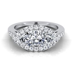 14K White Gold Marquise Diamond Horizontal Fancy East West Halo Engagement Ring -1/3ctw