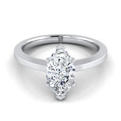 14K White Gold Marquise Beveled Edge Comfort Style Bright Finish Solitaire Engagement Ring