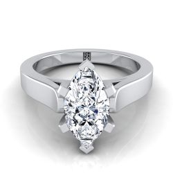 18K White Gold Marquise Cathedral Style Solitaire Engagement Ring