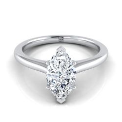 18K White Gold Marquise Pinched Comfort Fit Claw Prong Solitaire Engagement Ring
