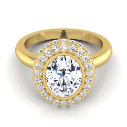14K Yellow Gold Oval Bezel Pave 3D Halo Solitaire Engagement Ring