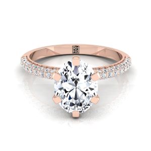 14K Rose Gold Oval Diamond Three Row French Pave Simple Engagement Ring -1/3ctw