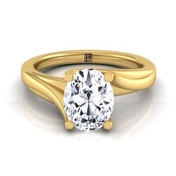 Classic And Elegant, This Oval Shape Diamond Solitaire Engagement Ring Showcases A 4 Prong Bypass Setting In 14k Yellow Gold