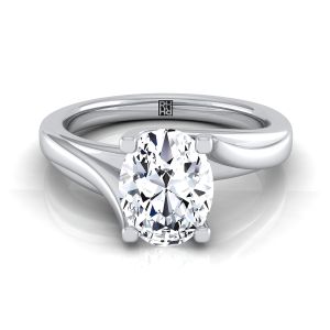 Platinum Oval Twisted Bypass Solitaire Engagement Ring
