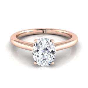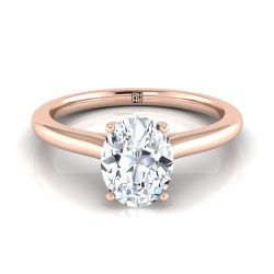 14K Rose Gold Oval Pinched Comfort Fit Claw Prong Solitaire Engagement Ring