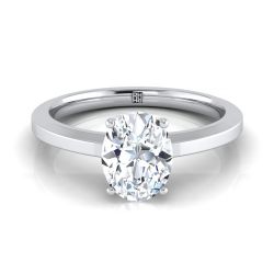 14K White Gold Oval Beveled Edge Comfort Style Bright Finish Solitaire Engagement Ring