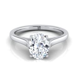 18K White Gold Oval Elegant Cathedral Solitaire Engagement Ring