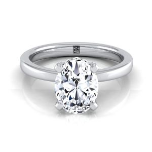 Platinum Oval Diamond Adorned Claws and Secret Halo Solitaire Engagement Ring -1/10ctw