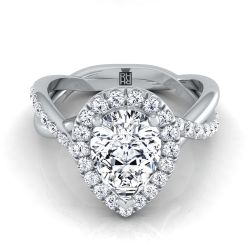 14K White Gold Pear Shape Center Diamond Twisted Vine Halo Engagement Ring -1/2ctw