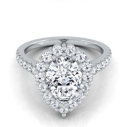 An Elegant Statement Of Style, This Pear Shape Halo Engagement Ring With Diamond Pave Shank Showcases Brilliant Cut Diamonds (h-i/vs 0.60ctw) Beautifully Set In A Classic 14k White Gold Setting.