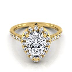 An Elegant Statement Of Style, This Pear Shape Halo Engagement Ring With Diamond Pave Shank Showcases Brilliant Cut Diamonds (h-i/vs 0.40ctw) Beautifully Set In A Classic 14k Yellow Gold Setting.