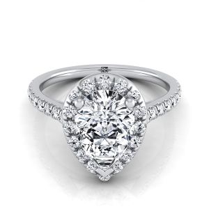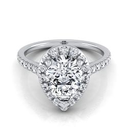 An Elegant Statement Of Style, This Pear Shape Halo Engagement Ring With Diamond Pave Shank Showcases Brilliant Cut Diamonds (h-i/vs 0.40ctw) Beautifully Set In A Classic Platinum Setting.