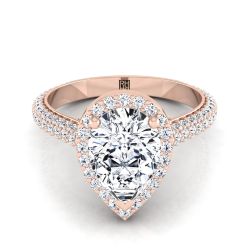 14K Rose Gold Pear Shape Center Diamond Micro-Pavé Halo Engagement Ring -7/8ctw