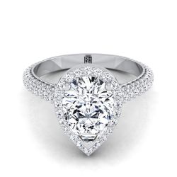 14K White Gold Pear Shape Center Diamond Micro-Pavé Halo Engagement Ring -7/8ctw