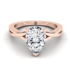 14K Rose Gold Pear Shape Center Delicate Twist Solitaire Engagement Ring