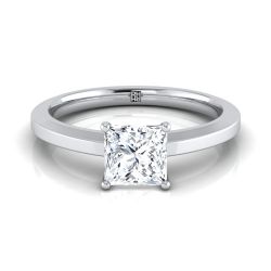 Platinum Princess Cut Beveled Edge Comfort Style Bright Finish Solitaire Engagement Ring