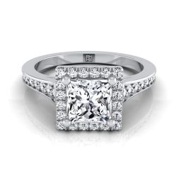 14K White Gold Princess Cut Diamond Classic Halo with Channel French Pave Engagement RIng -1/3ctw