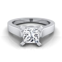 18K White Gold Princess Cut Cathedral Style Solitaire Engagement Ring