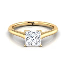 18K Yellow Gold Princess Cut Cathedral Style Comfort Fit Solitaire Engagement Ring