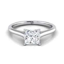 Platinum Princess Cut Cathedral Style Comfort Fit Solitaire Engagement Ring