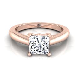 14K Rose Gold Princess Cut Scroll Gallery Comfort Fit Solitaire Engagement Ring