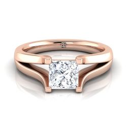 14K Rose Gold Princess Cut Modern Split Shank Solitaire Engagement Ring