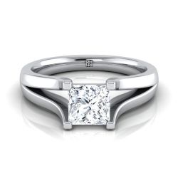 14K White Gold Princess Cut Modern Split Shank Solitaire Engagement Ring