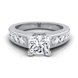 Platinum Princess Cut Diamond Antique Milgrain Bead and Channel Set Engagement Ring -1/2ctw