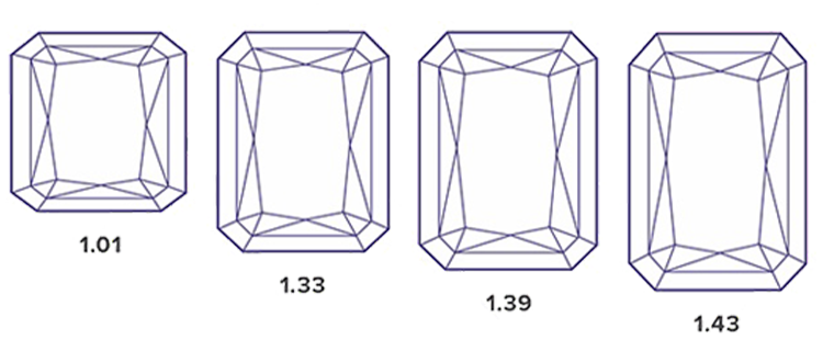 ROSI recommends radiant shape diamonds with a rectangular length to width ratio of 1.25 to 1.50.
