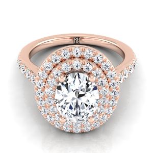 Exquisitely Handcrafted, This Double Pave Oval Halo Engagement Ring Showcases Brilliant Cut Diamonds (h-i/vs 0.80 Ctw) Beautifully Pave Set In A Classic 14k Rose Gold Setting.