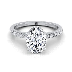 Platinum Oval Diamond Secret Diamond Halo French Pave Solitaire Engagement Ring -1/3ctw with a 0.42ct H, VS2 Oval Diamond