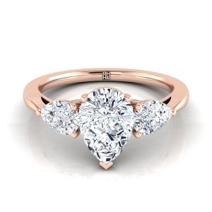 14K Rose Gold Pear Shape Center Diamond Perfectly Matched Pear Shaped Three Diamond Engagement Ring -7/8ctw with a 0.70ct H, VS2 Pear Diamond