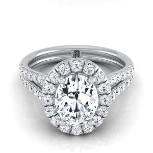 Platinum Oval Diamond French Pave Split Shank Halo Engagement Ring -5/8ctw with a 1.00ct H, VS2 Oval Diamond