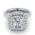 Platinum Radiant Cut Center Diamond Bold and Fancy Double Halo French Pave Engagement Ring -2ctw with a 0.43ct H, VS2 Radiant Diamond