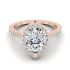 14K Rose Gold Pear Shape Center Classic French Pave Diamond Halo and Linear Engagement Ring -1/3ctw with a 0.81ct H, VS2 Pear Diamond