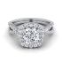 Platinum Cushion Diamond  Twisted Scalloped Pavé Halo Center Engagement Ring -1/2ctw with a 1.01ct H, VS1 Cushion Diamond